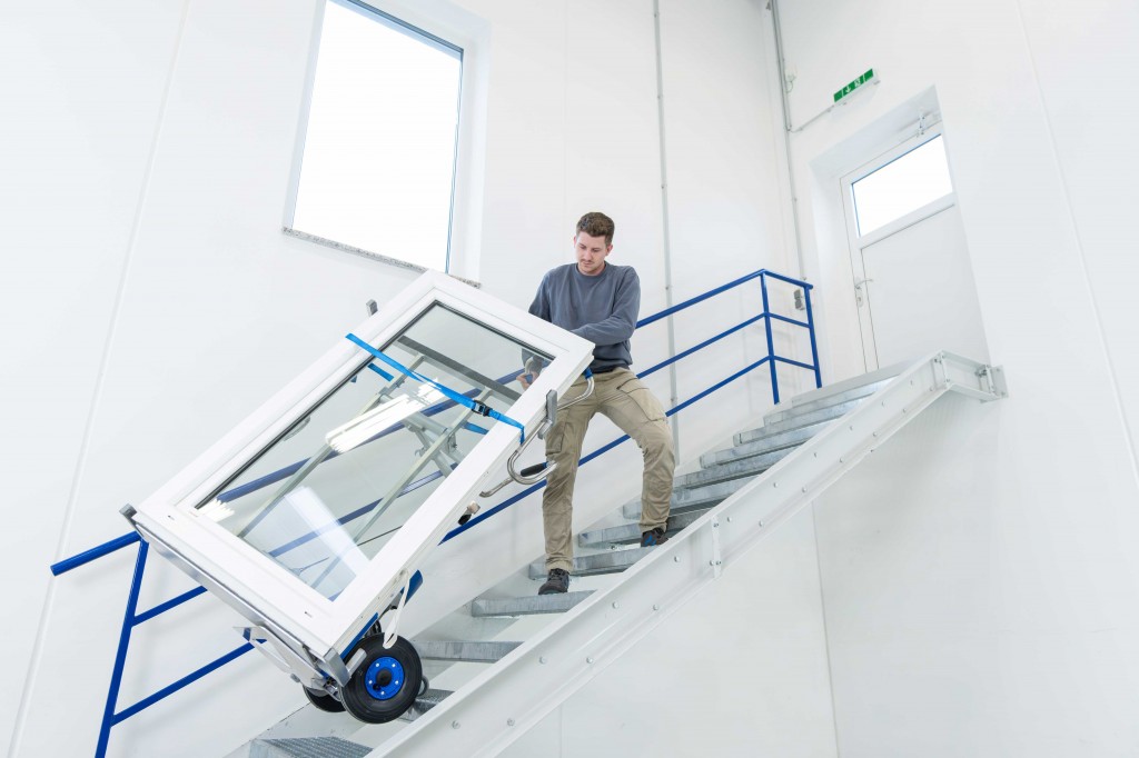 Na stopnicah ga enostavno upravljate v pokončni drži in imate pri tem tudi izredno dober nadzor nad tovorom.